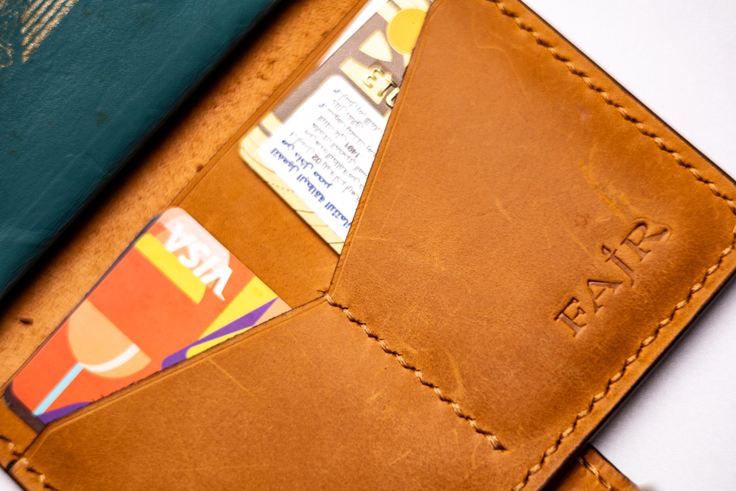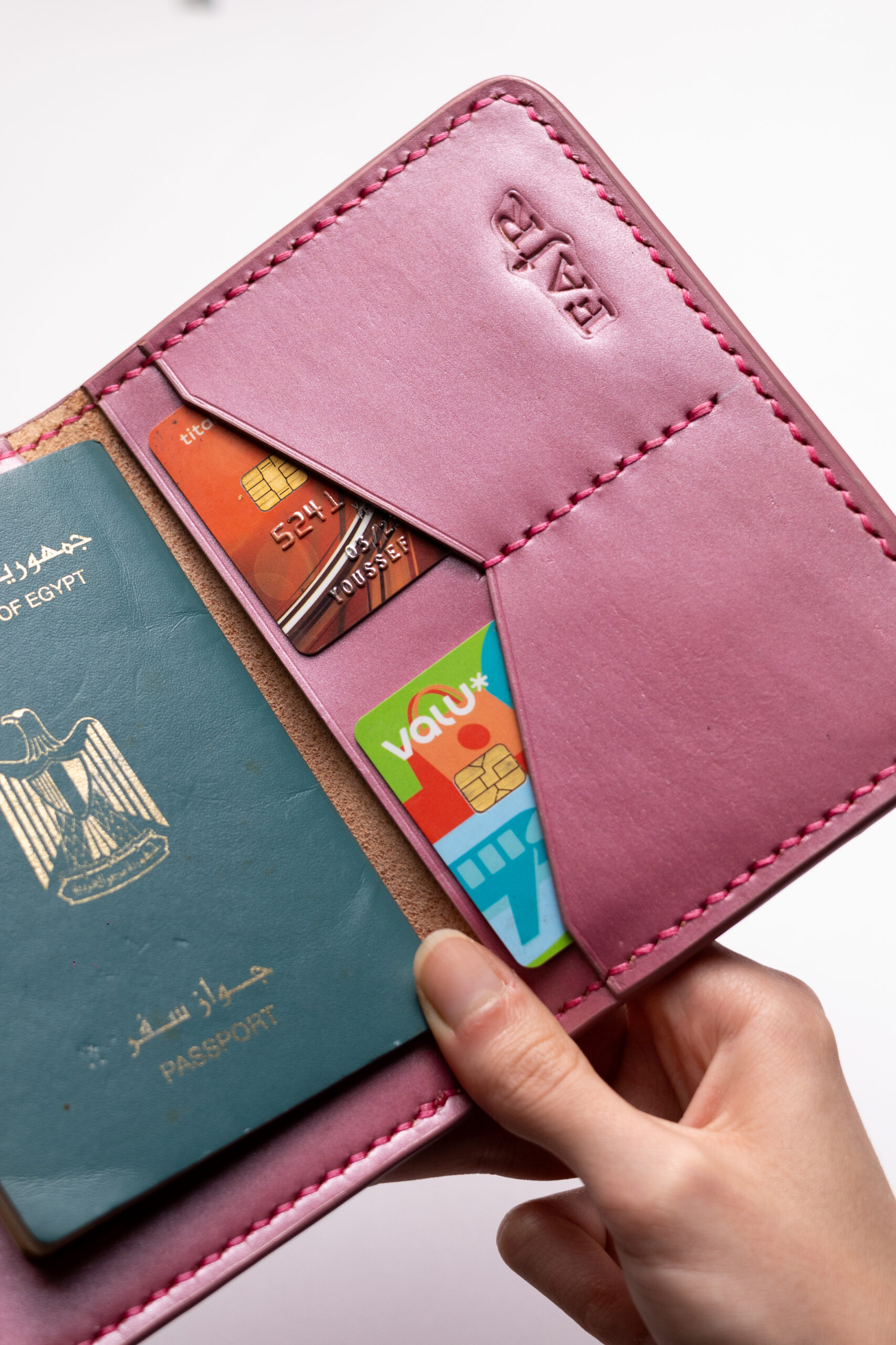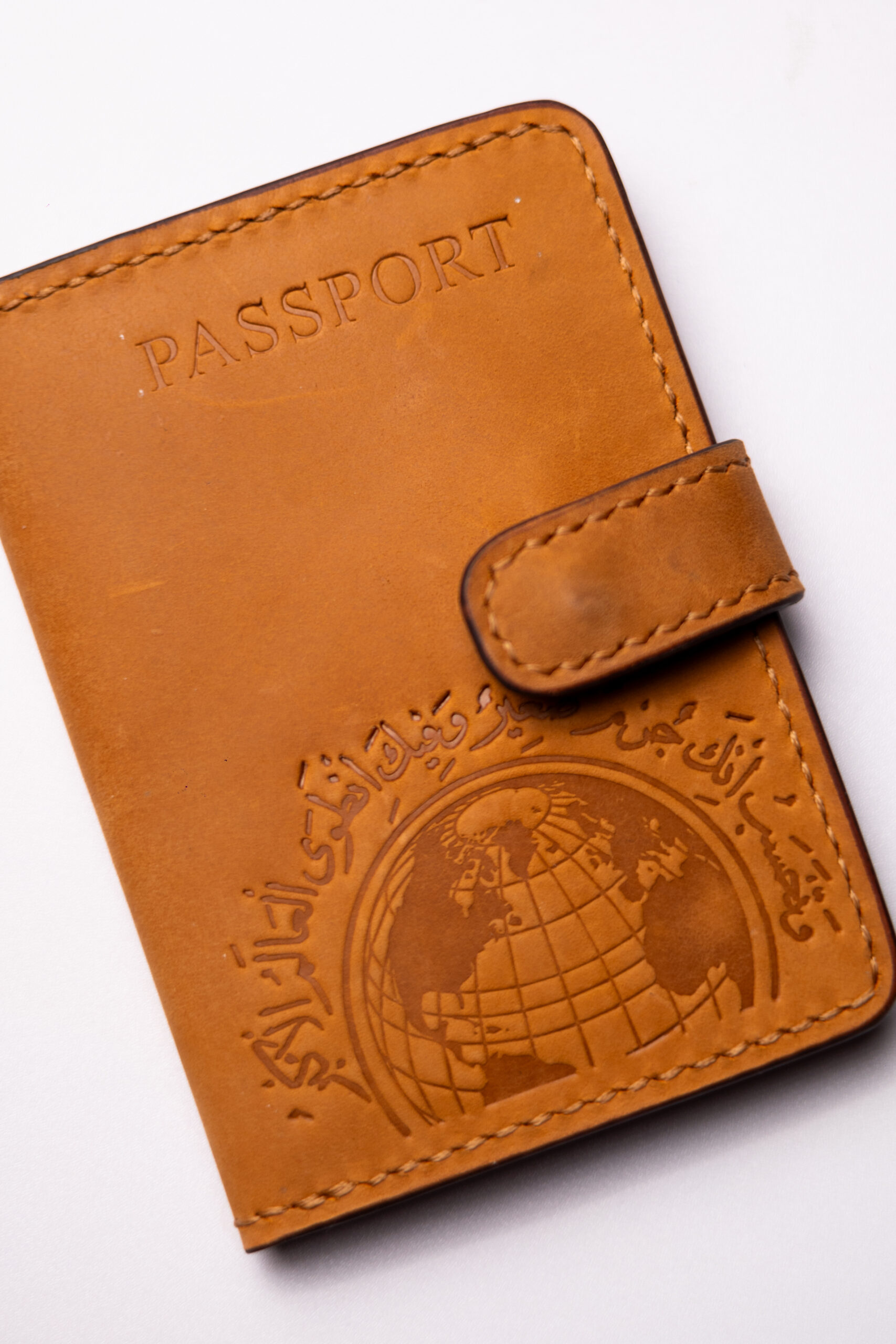 A fully handmade passport holder crafted from genuine leather,